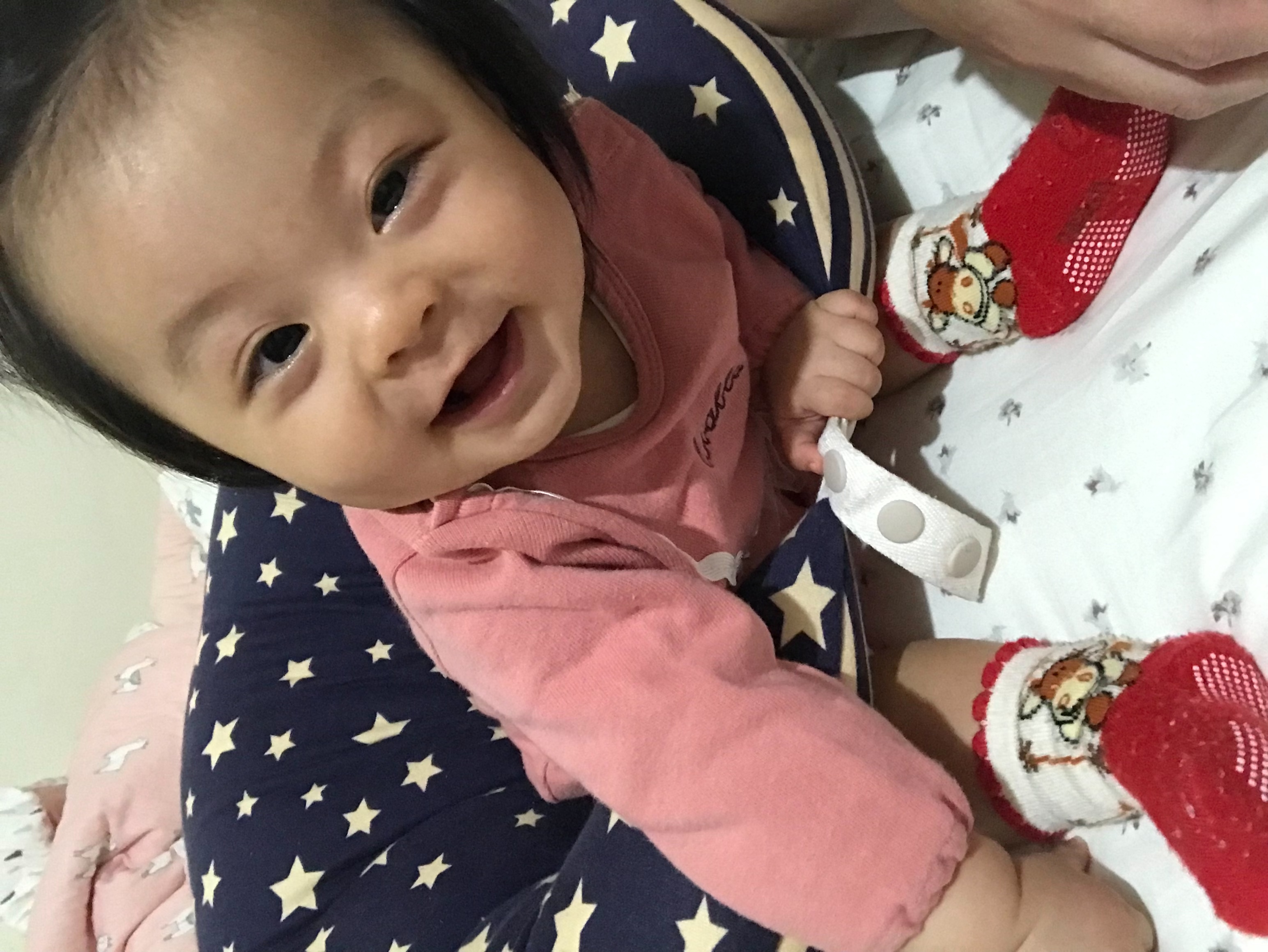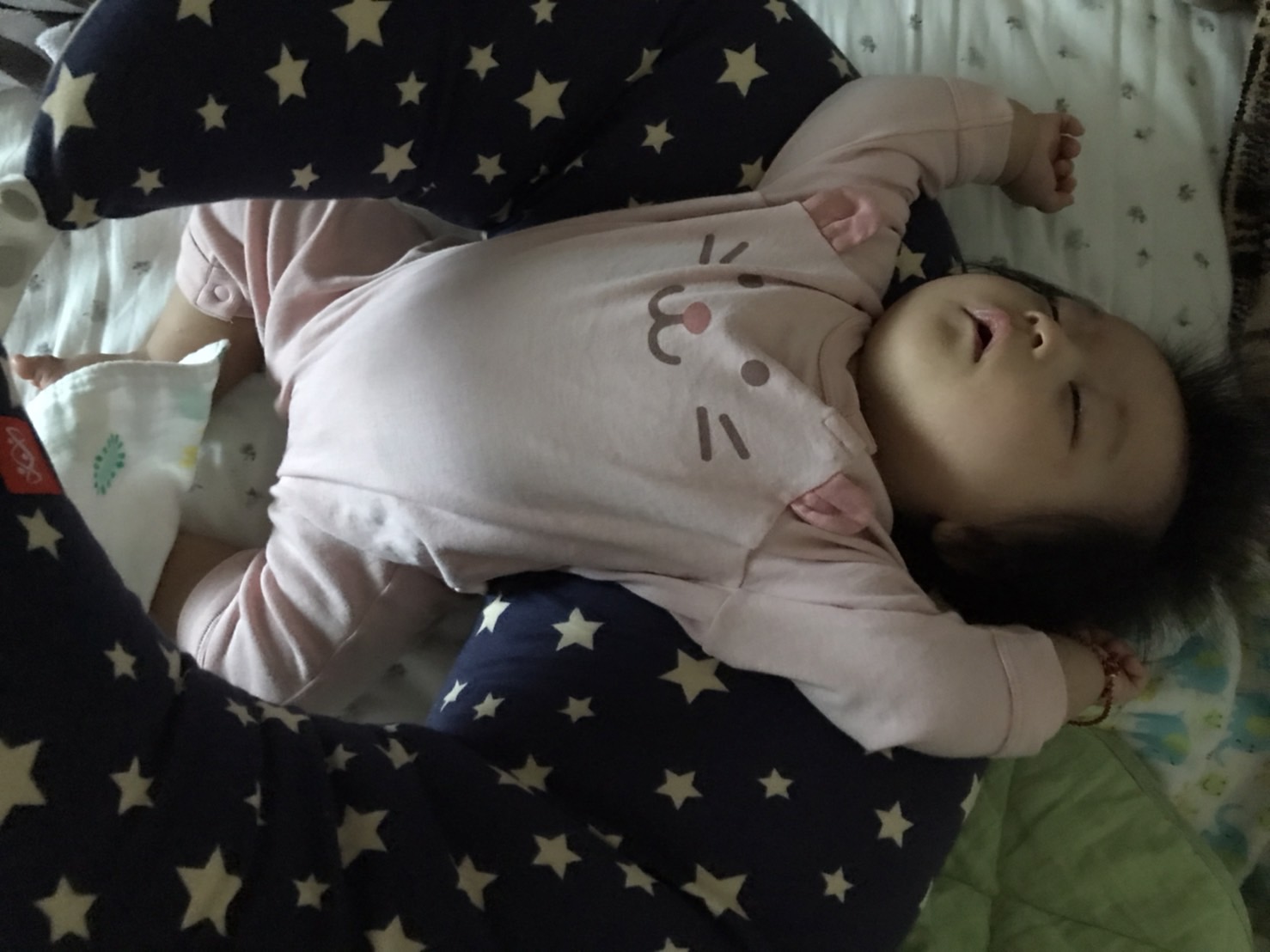 沒打嗝的時候這樣靠著,可以墊高也可以防止溢奶,寶寶都舒服睡到翻過去了