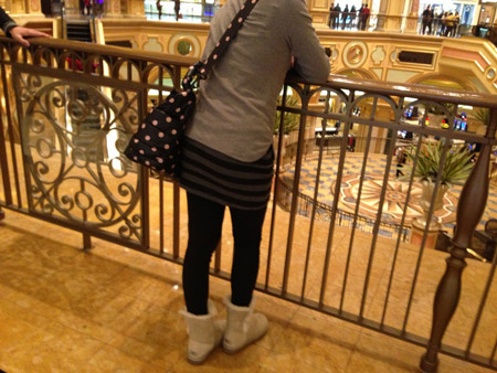 另一次出門則是直接搭一件比較短版的高領棉質上衣 + 雪靴,也很優吧~