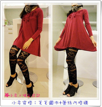輕熟女的look:搭配貴氣的毛毛圍巾 + 性感蕾絲褲襪